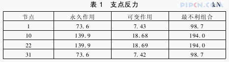 4)支点反力如表1所示。