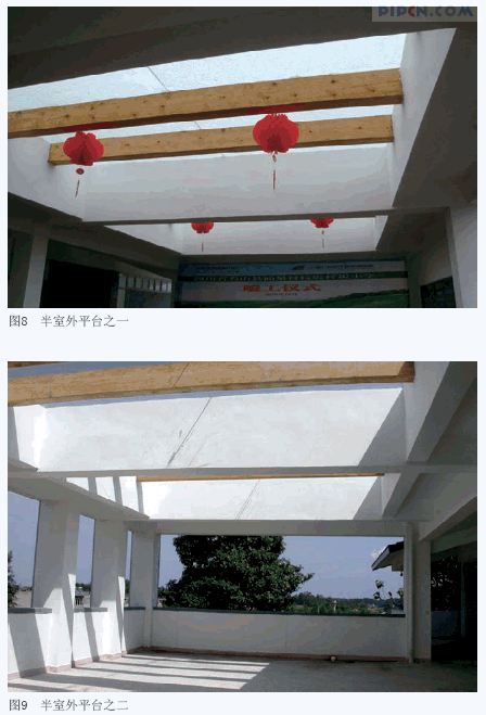 教学楼注重了祖国西南地区的通风、遮阳、避雨要求,教学用房外布置了一条外走廊。外廊不仅可以遮阳避雨疏解人流,并与二层的半室外平台形成师生的“第二活动场”。 尤当天气状况不佳时,教学文体活动可以如期举行。竣工典礼时逢秋雨绵绵,原定于室外广场举行的竣工仪式进行未半,风雨陡厉,不得不更换会场到二层活动平台继续进行。各级领导、广大师生以及来宾触景生情,给予“实用的灰空间”充分肯定与好评(图8~9)。