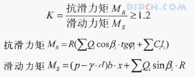 x 为基础中心线与滑弧圆心O的水平距离(m),取9.5m;