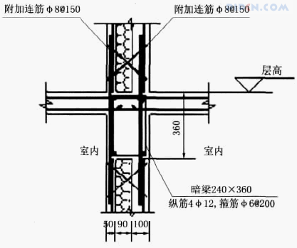 图 3 自密实混凝土夹芯保温墙板于楼层标高处的暗梁构造