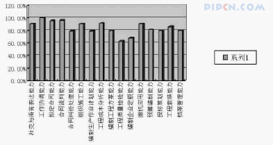 通过调查表的汇总和统计分析表明,80%以上的人认为建筑类专业人才应具备的专业能力有:社交与语言表达能力、工作协调能力、拟定合同能力、合同谈判能力、合同纠纷处理能力、组织施工能力、工程成本分析能力、编制施工方案能力、微机应用能力、预算编制能力、投标策划能力、工程索赔能力、档案管理能力。