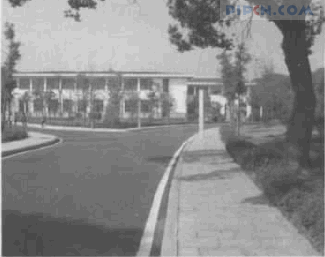 蓉园 8 号楼新建部分依托现有保留的客房楼,向南向东两向扩展,在最大限度地保护现有生态环境的前提下,使新建筑有机地穿插和布局,并与南侧新建的体育综合楼保持了适宜的外部距离和空间关系,重点保留了东、南两向一些有保留价值的树木,在总体设计中,建筑物亦作了相应的避让,使改扩建后的建筑整体与环境十分融洽,总体生态环境得到了保护和利用,取得了良好的效果。扩建建筑与客房楼共用大堂主入口设在北侧,工作人员入口设在建筑南侧。交通流线分明,互不干扰,建筑物东、南与北向均有 7米宽通道,与主入口、次入口相连。东向、北向均结合园路设有两个专用停车场,约可停小车 100多辆,满足了相关配套的要求。
