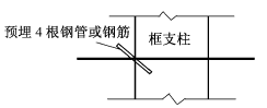 5·1 斜支座桁架斜撑杆支座处,框支柱根部预埋短钢管或32钢筋,将其与斜撑杆连接后支承斜撑杆(见图3)。