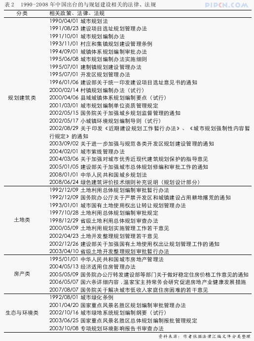 2.2 近二十年出台的与城市规划建设相关的法律、法规(见表 2)
