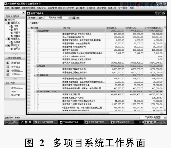通过开发的单项目系统应用实践和总结,2006年5月正式启动本阶段工作。由于在单项目系统开发过程中进行系统结构设计时,对多项目结构已统一考虑,加上集团公司和各区域公司的计算机硬件基础良好,基于B/S的系统结构在远程通信速度有保障,本阶段的开发过程顺利很多,工作压力也较前一阶段大大减轻,主要工作是对用户需求的变化进行处理;通过到区域公司调研,对区域公司LOGO、报表模板、工作流程等特殊性要求进行处理等。图2是多项目系统的一个工作界面。