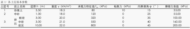 根据本工程岩土勘察报告,各土层基本参数如表 1。