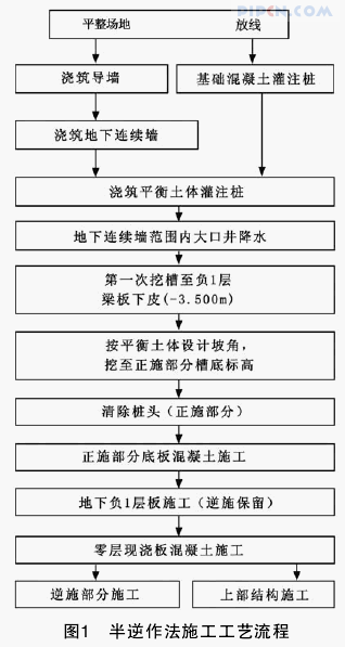 本工程半逆作法施工工艺流程如图1 所示。
