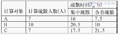人员的疏散分集中疏散和各自疏散两种情况考虑,三个计算对象的 Tm 如表2所示。