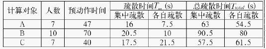 按照式 (1),总疏散时间的计算结果T total如表3所示。
