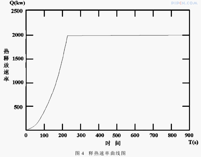 虽然讨论的场所空间不大,可燃物的构成也比较单一,但考虑到火灾的突发性和意外事故,采用较为保守的火灾增长方式,如图4所示。