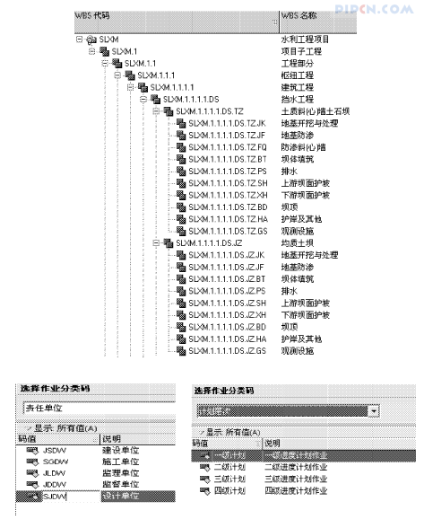 对于大中型、特大型水利工程项目来说,由于参与工程建设的单位很多,为了协调各方,项目使用P3e/C软件管理进行统一的信息编码规划是十分必要的。通过统一的信息编码规划,不仅便于项目工程数据的汇总分析,而且便于工程协调控制和加快工程信息的交流。一般来说,尤其是项目庞大时,业主和工程监理最好事先就给出规划,以便日后整个计划编制与进度控制秩序井然。