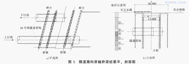 盾构切削桥梁桩基平、 剖面图见图1。