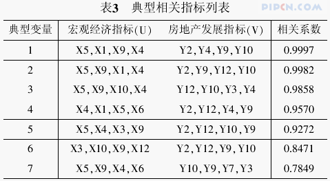 由表 2 可知,前七对典型变量显著相关,且相关程度很高(均在 0.75 以上),说明宏观经济指标的某种线性组合与房地产指标的线性组合强线性相关,我国宏观经济与房地产业之间确实有很强的相关性。