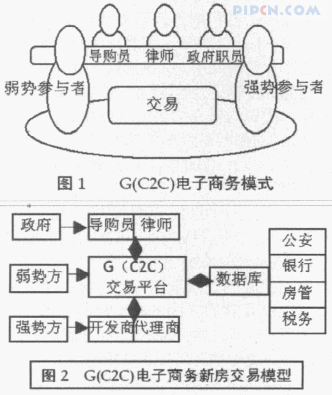 1、新房交易中的 G(C2C)电子商务模式如图2 所示,在 G(C2C)模式中,政府将成为第三方监督者,其作用是:维持市场秩序,保护消费者权益。政府官方提供一个交易平台,与公安机关、银行金融机构、房产管理部门、税务部门、土地管理局等部门实现数据共享,从注册开始进行层层安全过滤,有效维持平台进行公平、公正的交易,缩短办理手续的繁琐过程。