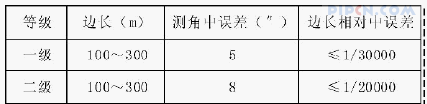 (2)、布网法加测对角线的三边网,平均边长≤2 K m ,测距中误差≤ 2 0 m m ,测边相对中误差≤1/100000。最弱边边长相对中误差≤ 1/40000。