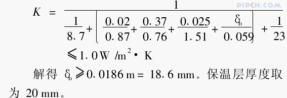 保温层的厚度δb计算由控制标准反推得到,将外墙近似作为匀质多层材料的平壁结构。外墙各材料层的热阻: