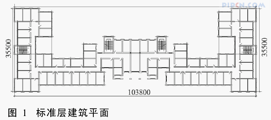 合肥某办公楼建于1956年,主体3层,局部4层,总高度15·2m,总面积约6600m2。实心粘土砖砌体结构,纵横墙混合承重,现浇钢筋混凝土楼盖,未设置构造柱和圈梁,图1为标准层建筑平面图。1层、2层内外墙为370mm,3层、4层外墙为370mm、内墙为240mm。