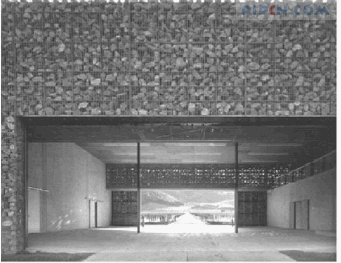 美国加利福尼亚的道密纽斯酒厂(图4)的设计是瑞士建筑师赫尔佐格&德·梅隆的作品,他们根据葡萄酒存储的要求,尝试适应并利用这里气候特点。如以当地特有的玄武岩作为表皮材料,这样,白天阻隔、吸收太阳热量,晚上将其释放出来,可以平衡昼夜温差;把附近可以采集到的天然石块,装入金属丝编织的“笼子”中,形成尺寸较大的、形状规则的“砌块”,形成建筑表皮。这种有绿色、黑色等不同颜色的玄武岩墙,与周边景致优美地融为一体。根据内部功能的不同,编织的金属铁笼的网眼有不同大小规格,根据不同位置的需要,石块间隙大小不同,形成室内多变的光影。建筑师从建筑源初出发,寻求自然并超越之。
