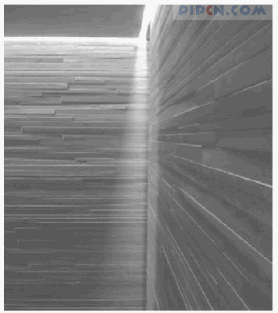 彼得·卒姆托(PeterZumthor)对材料有着感性的处理方式,他认为尽管材料本身并不是诗性的,但只要建筑师为它们创造出具有意义的情境,材料便能在建筑中展现诗性。瓦尔斯温泉浴场改造项目中(图5,6),卒姆托发掘材料内在的特性,细致地考虑材料触觉、气味和声学品质,将其与特定的场所、建筑结合在一起,赋予材料以特定的意义。卒姆托重新开发了瓦尔斯石材切片工艺,他把当地石材制成很薄的石片。每一片石材都经过了绘制和测量。每一片石材都恰如其分地出现在它应当出现的地方。整座浴场采用瓦尔斯当地的灰色石英岩和混凝土建成,浴场内部犹如原始洞穴,深入其间,会被四面清一色的石材所震惊。