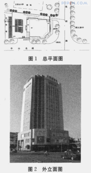 在芜湖供电局调度大楼的设计过程中,可谓充分展示出设计与规划、甲方及相关部门相互协作的精神。由于建筑总图布局,受规划用地的条件限制,建筑采用近于“方”形,为了减少主楼对城市道路压抑感,沿城市两干道用“锯齿形”的处理手法,此设计构思得到了甲方的理解与规划局的支持。最后建成了一幢立面造型简洁明快,平面布局经济实用作品,见图1总平面图;图2外立面图。