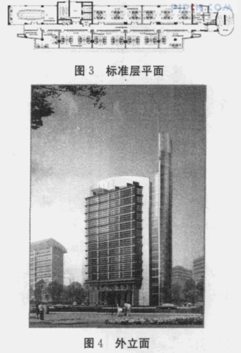 当今建筑设计大部分只顾外型而且大部分是抄袭外国的样本,对于一个建筑物的布局、空间内外组织、功能分配等重要成分,不认真研究、草草交待,在一些城市建设当中贪大求病例洋,盲目追求大马路、大广场、大草坪、脱离实质,不结合当地现实情况,结果造成很大浪费,造就一批“烂尾工程”,不伦不类的建筑,既对不住自已,对不住城市,更对不住观众。例如:某办公楼的设计:总建筑面积在7800M2左右,设计层数达到十五层,平面形式采用很薄的“椭圆”形(如图3),结果平面利用系数低,使用功能不合理,为追求立面形式,单独设计了“椭圆”形全玻璃幕墙疏散楼梯,既不利抗震、安全,又不经济实用(如图4)。