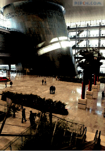 在室内空间各种构成要素中,质感与色彩构成具体材料的表情。对材料的恰当使用是创新的一种途径,室内新材料层出不穷。比如北京的首都博物馆,大厅一侧有一个青铜质地的椭圆形展馆,饰面全部为青铜制成,斜出墙面,寓意文物破土而出。传统青铜工艺的制作都是局限在器物造型方面,与建筑的结合在我国都是首次尝试,它厚重的质感以及单纯的设计形式给人们强烈的感受。选用青铜也是一种暗示和隐喻,中国的青铜文化是我们的骄傲。