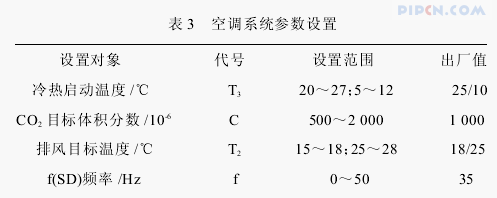 空调系统控制的设备参数如表 3。