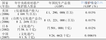 表1 实行建筑遗产登录制度的主要国家中央政府对遗产保护的投资[3]