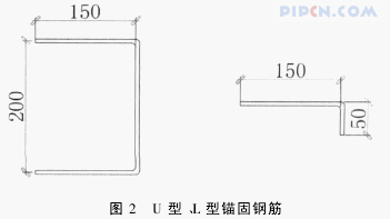 5.1.3 锚固钢筋。加工制作L型锚固钢筋、U型锚固钢筋(如图2),其直径均为Ф6。L型锚固钢筋长度为150mm,90°弯钩长50mm。U型锚固钢筋长200mm,90°弯钩长150mm。锚固钢筋刷防锈漆两道,防止在安装后抹灰前暴露于空气中而锈蚀。