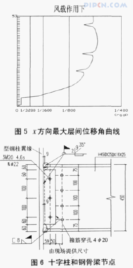3)核心筒外楼面采用钢筋混凝土楼板,协调外围钢框架与核心筒在水平荷载作用下的变形。