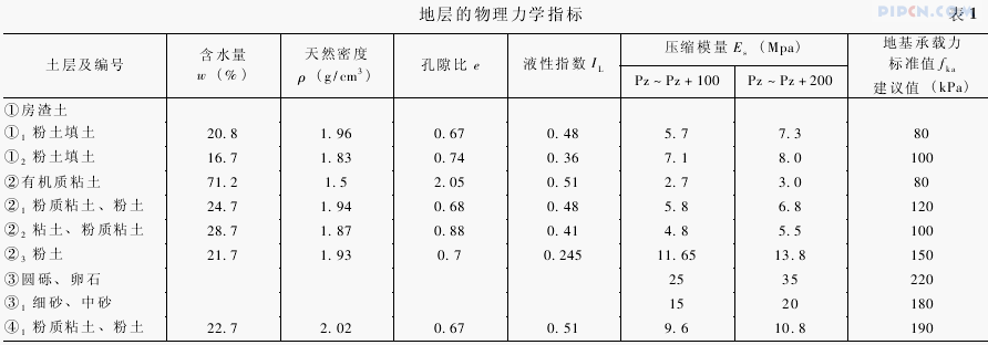 (1) 对所取土样进行了物理力学试验,主要试验指标统计结果见表 1。试验表明基础底下的粉土填土①2 层具有一定压密作用,与原位测试结果(N10击数为 20 次以上) 反应的情况基本一致;