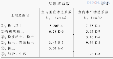 (2) 基底下浅部的粘性土、粉土地层的渗透性很低,其试验成果参见表 2;