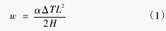 式 (1) 中,w 为侧向位移,α 为材料线膨胀系数,ΔT 为梁两侧温度差,L 为梁长度,H 为梁截面高度。虽然电视塔核心筒可以简化为一根悬臂梁,但由于外筒的存在,极大地减少了电视塔的水平位移,另外核心筒截面温度变化也不是线性的,所以不能直接应用式 (1) 计算电视塔的水平位移。尽管如此,式 (1) 表明像电视塔这样一个近似悬臂结构的变形应该与温差和高度的平方成正比。因此这里假设电视塔的最大水平位移可以用式 (2)来表示: