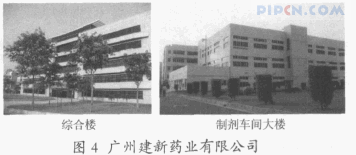 ⑶除了中国传统建筑艺术在医药工业建筑上的运用外,西方简约主义思想也在影响着医药工业建筑设计。医药工业建筑往往需要体现的是一种洁净、简洁、明快、现代的风格,以配合医药工业生产洁净化的概念。传统企业也开始选择现代简约的建筑设计理念。简约的外观造型体现了医药企业的现代化气息以及高科技和高品质的技术内涵。例如,东莞亚洲制药有限公司制剂大楼(见图 3)和广州建新药业有限公司的综合楼和制剂车间大楼就充分体现了上述设计理念(见图 4),立面线条简约大方。