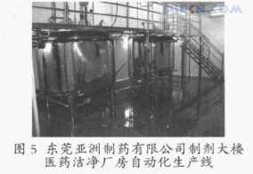 医药工业建筑人性化主要体现在以下几个方面。⑴生产线自动化程度提高,生产技术人员只需在控制室内便可完成基本操作,生产变得更为简单方便。这充分体现在医药洁净厂房自动化生产线的设计上(见图5)。