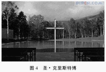 光,这里所讨论的“光”不是指物理意义上的光现象,而是指美学意义上的光现象。光的照明是人们观察和认识环境的重要手段,由于光人们才得以觉察对象的形状、大小、轮廓、细部、色彩、相互关系以及位置等。勒·柯布西耶认为:“光和影是建筑艺术的元素”[4]。建筑中光的运用对烘托环境气氛,表达空间意境,有着重要的作用。光是环境构成与表达中一个重要因素,空间的认识、对材质特性及色彩等的表达,都是借助光的作用。光的设计与应用不仅是功能性的,也是表达性的,直接用光线生成意境空间的最成功的实例莫过于安藤中雄的光的教堂,安藤运用光线最令人称道的地方在于创造了充满诗意的空间氛围。