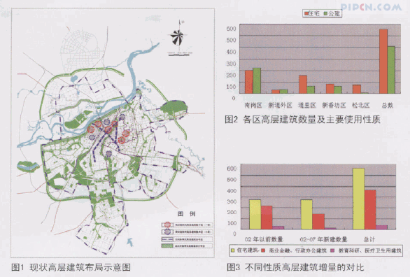 通过将 2002 年与 2007 年高层建筑布局的情况进行对比,发现近五年内城市高层建筑布局的变化呈现出以下 5个特征。