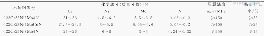 表2 双相型不锈钢主要合金元素(GB/T20878-2007)