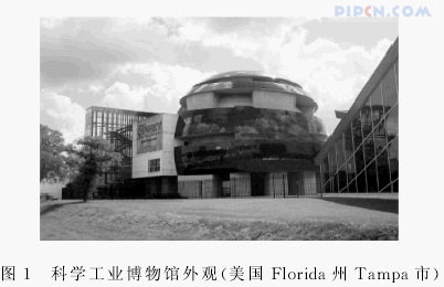 1996年在美国Florida州的 Tampa市建造了科学工业博物馆,覆盖面积11000m2,该博物馆因形成强烈反差的几何形状和醒目的外表颜色而引人注目(图1)。博物馆外表的曲线形墙面是把三角形彩色不锈钢板固定在铝合金辅助支架上,二者间的连接采用不锈钢螺栓。在整个墙面系统中大约采用了29t,16mm 厚的(AISI304级)退火不锈钢板。