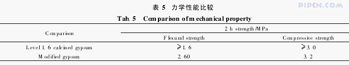 将经物理改性和化学改性后的钛石膏的力学性能与GB/T9776-2008建筑石膏标准中的强度指标进行比较,见表5,可见改性后的钛石膏的2h强度已经超过标准中1.6等级的要求,具有用作建筑材料的可能性。