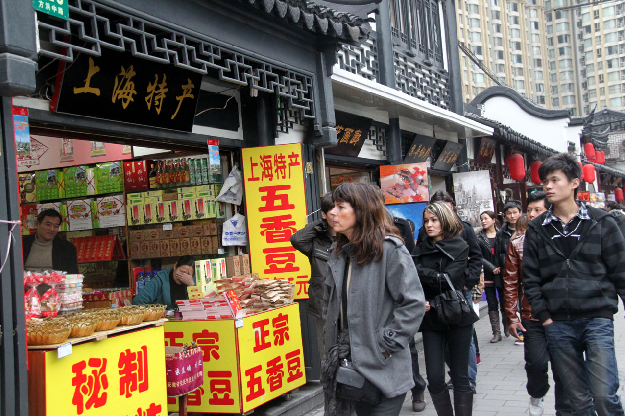 一百年前,这条街便开始出名。那时的老街上,汇集着上海早期的银楼、商行、钱庄、酒肆、戏院;而今的老街上,如果忽视身边行人的现代装束,商店中播放的“金嗓子”周璇那一首首带有颤音的老歌会让行人迷惑,仿佛身置七十年前的上海滩。