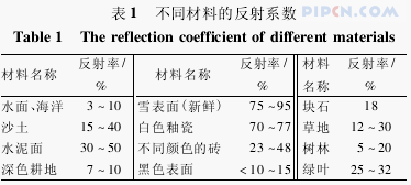 住宅区的景观设计,是对于建筑设计的完善和补充。其不仅要从自身美观的角度设计,还要考虑周围道路环境、建筑场地环境、地域气候特征等众多因素,既要融入环境,又要引导环境。在生态节能方面,居住区植物在生长过程中的“蒸腾作用”和“光合作用”,都吸收太阳辐射热,改善居住区微生物环境,调节住宅室内外热量的渗透交换,改善地表附近的温度湿度环境,使得外出的人们有幽雅舒适的活动空间。从竖向的绿色景观设计上说,合理地利用绿化植被随季节变化的规律,为建筑外表皮起到有效的建筑遮阳作用。另外改善地面铺装,可以减少建筑周围地面的阳光反射程度,调节住宅外表皮温度(表 1)。这些都可以起到调节空气温度,改善生态环境的作用,所以,景观设计在居住区节能中占有相当重要的一环。