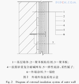 围护结构的保温性能和门窗的气密性是影响寒冷地区既有公共建筑能耗的主要内在因素之一。其中围护结构的传热热损失约占70% ~80%,门窗缝隙空气渗透的热损失约占20% ~30%。可见,围护结构保温性能的改进自然成为寒冷地区建筑节能工作的重点。外围护结构主要包括:外墙、门窗、屋面等。一般来讲,减少外墙传热有两种方法:一是严格控制体型系数,减少传热面积;二是增强外墙体的保温、隔热性能。外墙外保温技术是将保温隔热系统通过组合、组装、施工或安装,固定在外墙外表面上。对于既有建筑的节能改造来说,采用墙体外保温做法在技术上已经成熟(图 2、图 3)。