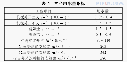 根据宝兰客专实际工程的测算推荐如表1所示生产用水指标。