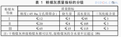 粉煤灰的质量指标划分为如表1所示三个等级。