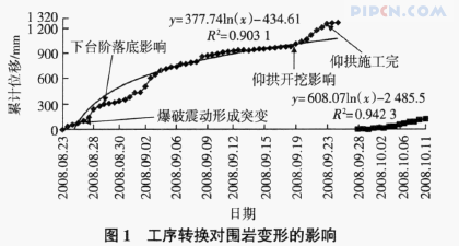 1)强化工序组织、快速成环,步序合理、工艺到位和采取的一系列措施对隧道变形具有抑制作用,以二衬施工控制开挖速度,是减少变形拆换的一个有效方法。