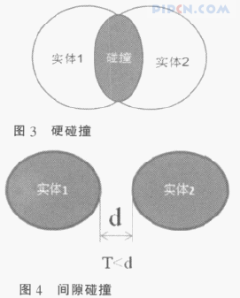 硬碰撞(Hard Clash):实体在空间上存在交集(见图3)。这种碰撞类型在设计阶段极为常见,特别是在各专业间没有统一标高的情况下,发生在结构梁、空调管道和给排水管道三者之间。间隙碰撞(Space Clash):实体1与实体2在空间上并不存在交集,但两者之间的距离d比设定的公差T小时即被认定为碰撞。如图4所示,T<d,因而实体1与实体2并没有发生碰撞。该类型碰撞检测主要出于安全考虑,例如水暖管道与电气专业的桥架、母排有最小间距要求,可以根据专业之间设定的最小间距要求,检查最小间距是否满足设计要求,也可以同时检查管道设备是否遮挡墙上安装的插座、开关等。