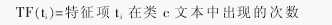 其中wi为第i个特征项在文本中的权重,TF(ti)是特征项ti在文本dj中出现的频数,n表示特征向量的维数。