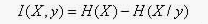 信息论量度信息,是把获得的信息看作用来消除不确定性的东西,信息量的大小用被消除的不确定性的多少来表示。假设随机事情X在获得信息y之前的不确定性为H(X),获得信息y之后为H(X/y),信息y中包含的关于事件X的信息量为: