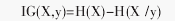 H(X)表示在获得信息y之前系统的熵。对于文本分类而言,其表示的是一个随机文档落入某个类的概率空间的熵,即类别集合X所能提供的信息量的多少。H(X/y)表示获得y后,此文档落入某个类的概率空间的熵,即观察到y之后所能提供的信息量。这种不确定程度减少的量也就是信息增益,代表y对分类所起到的作用,即它所能提供的分类信息量。